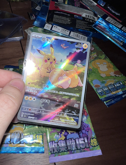 Then, out of nowhere, I pulled the Pikachu AR—a raw $650 Chinese-exclusive art rare.